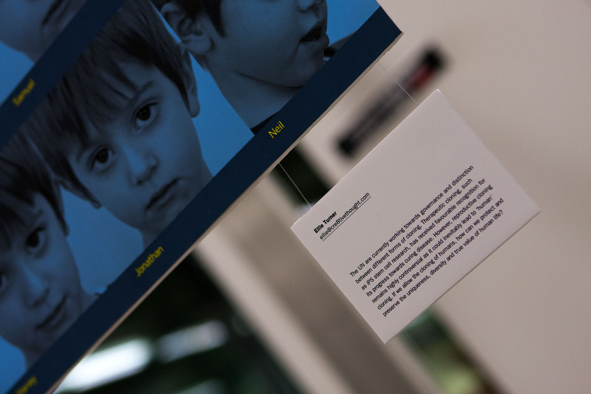 To produce a written topic rationale and design exhibition/topic posters for an exhibition held at Central Saint Martin's, 'Is this tomorrow?'. The exhibition was promoted as a visual response to future issues.